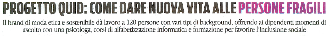 Il quotidiano nazionale parla dell’Impresa Sociale Quid e del brand di moda etica Progetto Quid, ripercorrendo i momenti fondamentali di quest’esperienza e sottolineando i traguardi raggiunti.