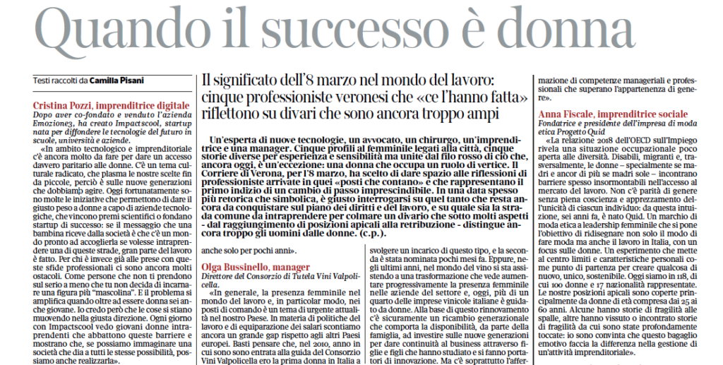Sul Corriere di Verona per l’Otto Marzo anche Progetto Quid
